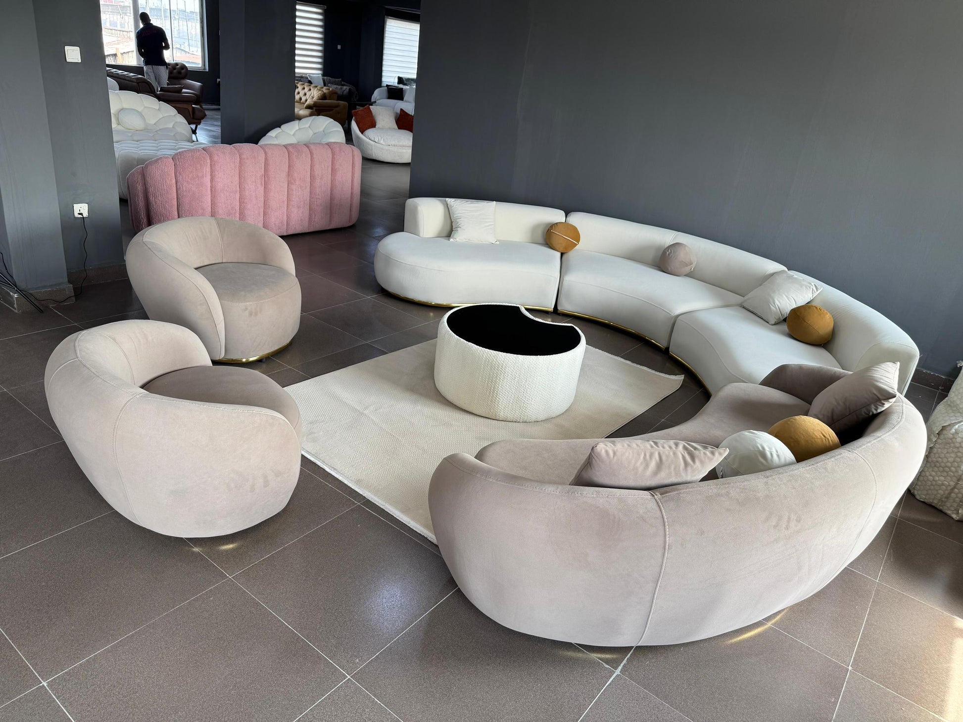 Key Features: High-density foam for "sink-in" comfort, tactile bouclé upholstery, and a seamless 360-degree finished back.